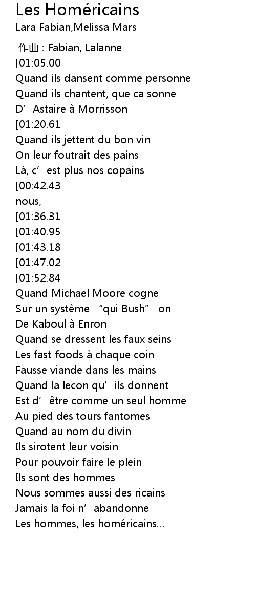 | [00:55.97][01:52.84] | Etre homé ricains |