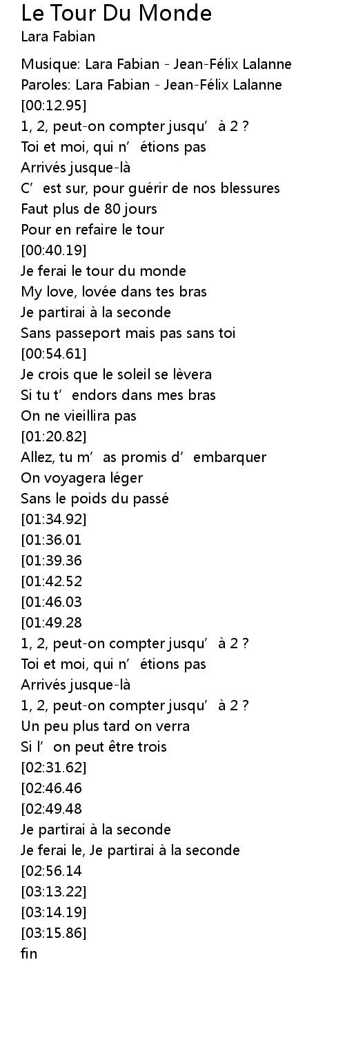 | [02:59.48][02:46.46] | Je ferai le tour du monde |