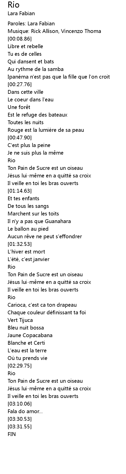 | [02:00.22] | Rio |