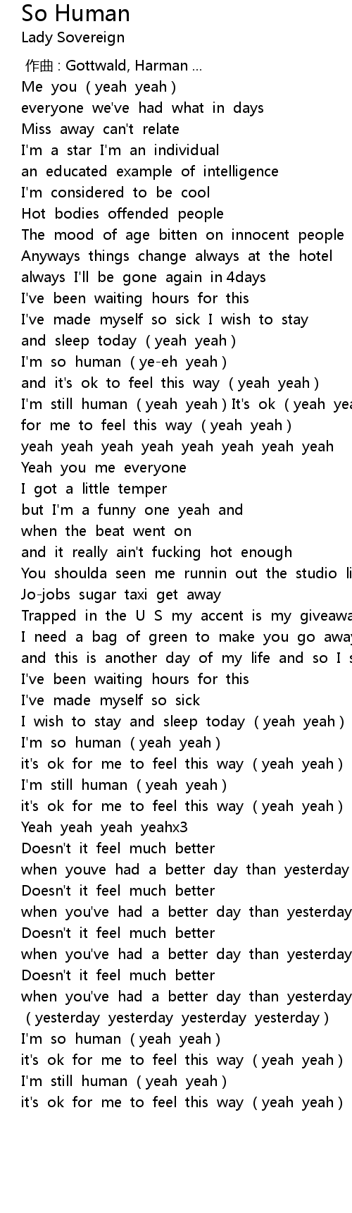 | [00:50.10] | I' m still human yeah yeah It' s ok yeah yeah |