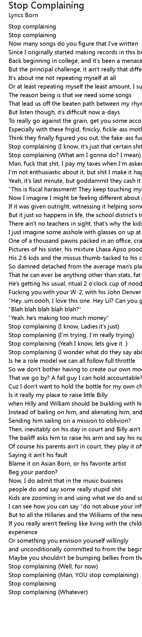 Stop complaining (Yeah I know, lets give it. ) |