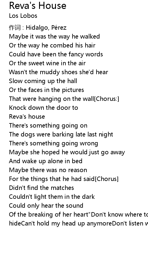 | Of the breaking of her heart"Don't know where to run toI don't know where to hideCan't hold my head up anymoreDon't listen when I cry"[Chorus] |