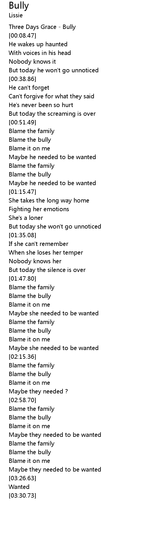 [03:16.25] Blame the bully