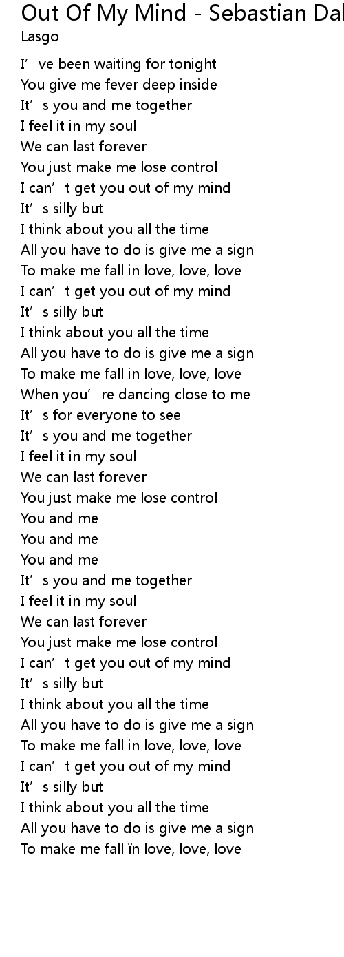 | I can’t get you out of my mind | |