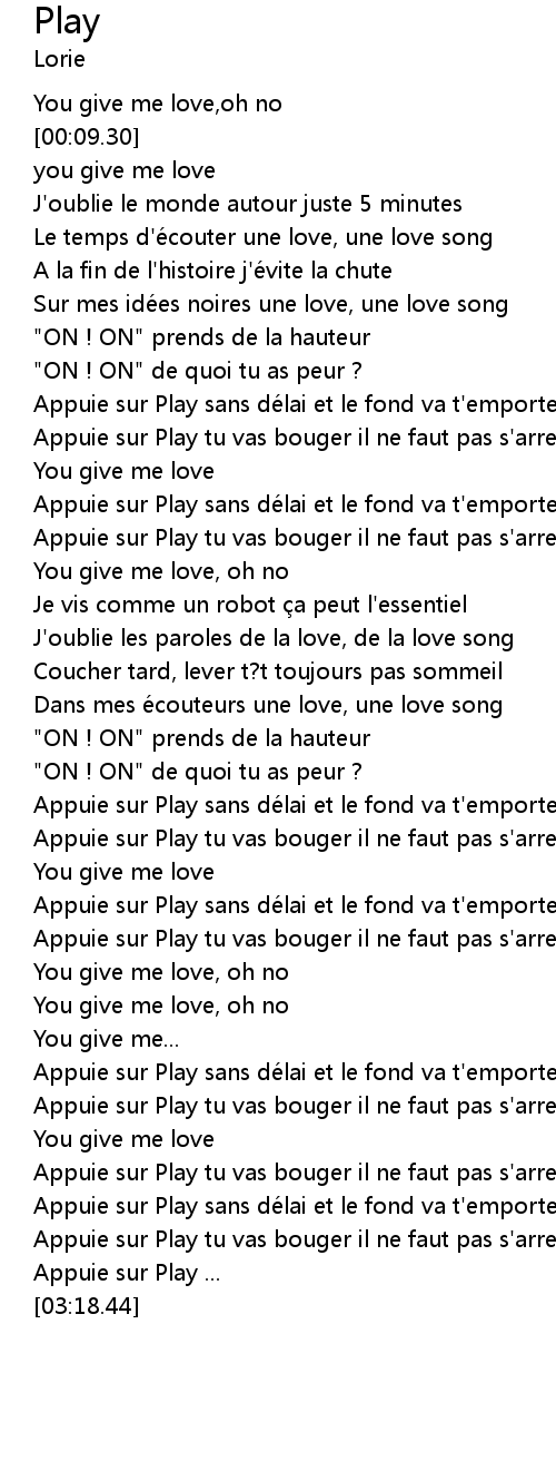 | [03:08.64] | Appuie sur Play tu vas bouger il ne faut pas s' arreter |