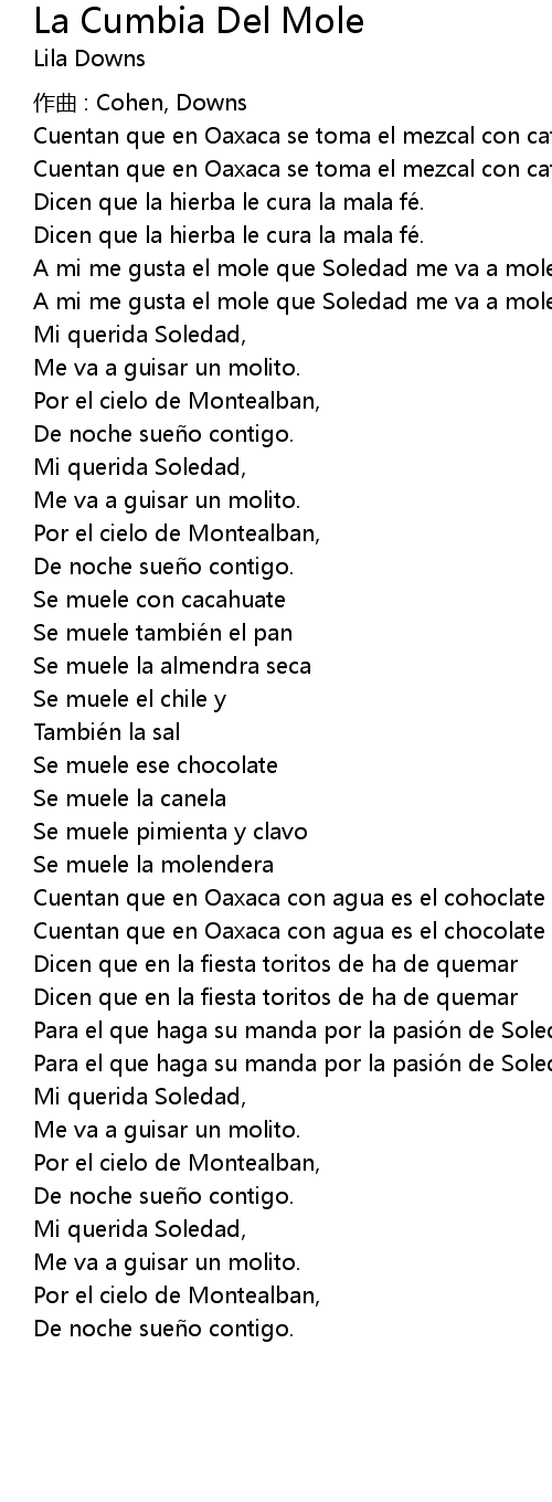 | Song | La Cumbia Del Mole |