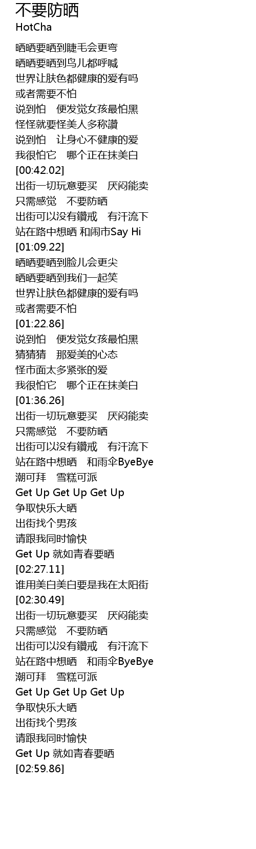| [02:01.83] | Get Up 就如青春要晒 |