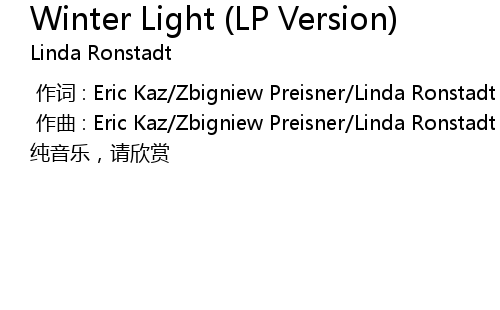 | [00:01.000] | zuò qǔ : Eric Kaz Zbigniew Preisner Linda Ronstadt |