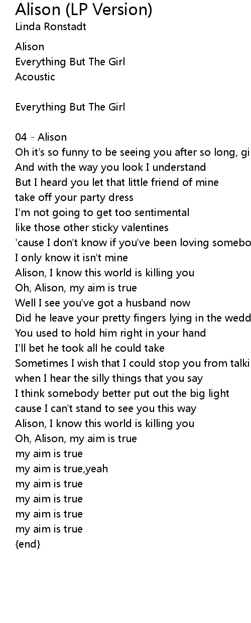 Oh, Alison, my aim is true |