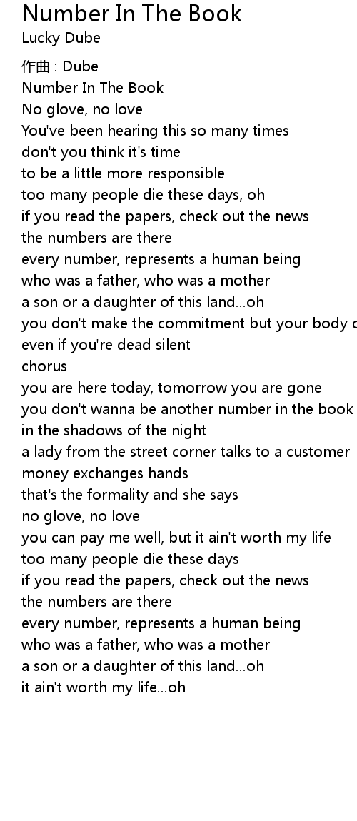 | you don' t wanna be another number in the book x3 | |