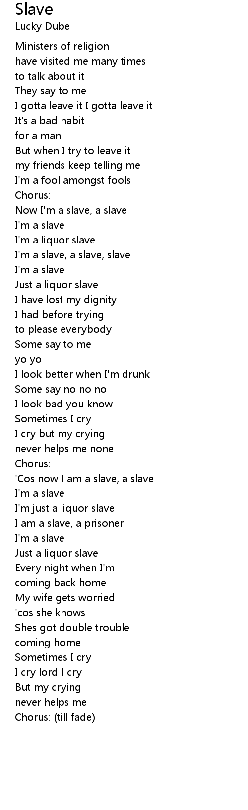 'Cos now I am a slave, a slave |