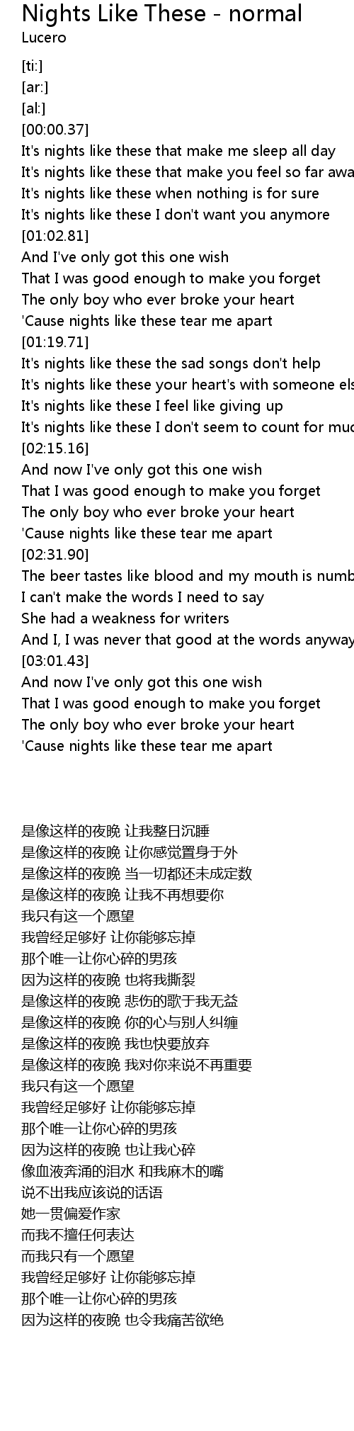 | [03:37.56] | 'Cause nights like these tear me apart |