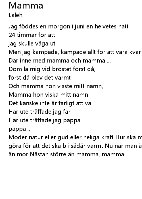 | Men jag k mpade, k mpade allt f r att vara kvar D r inne med mamma och jag D r inne med mamma och mamma ... | |