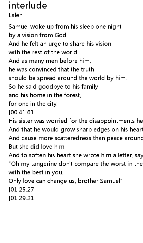 | [01:19.01] | Only love can change us, brother Samuel" |