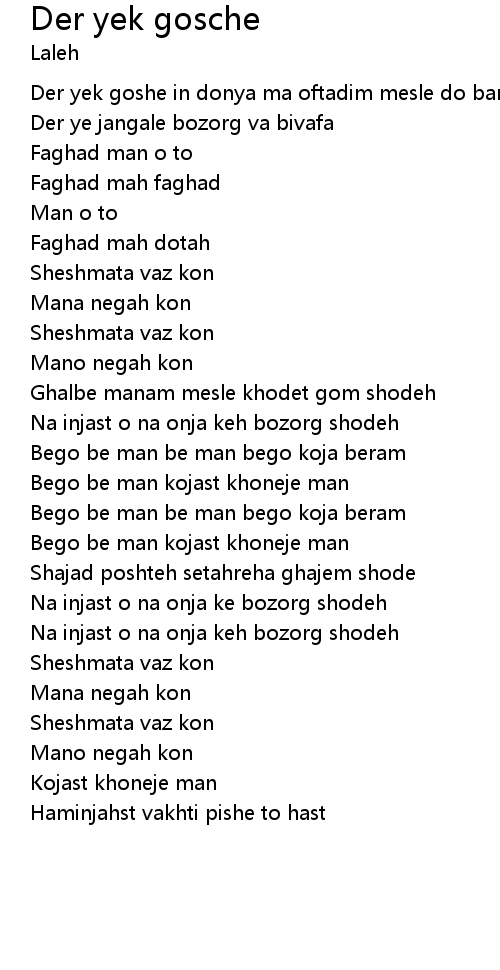 | [00:02.00] | Der yek goshe in donya ma oftadim mesle do barg |
