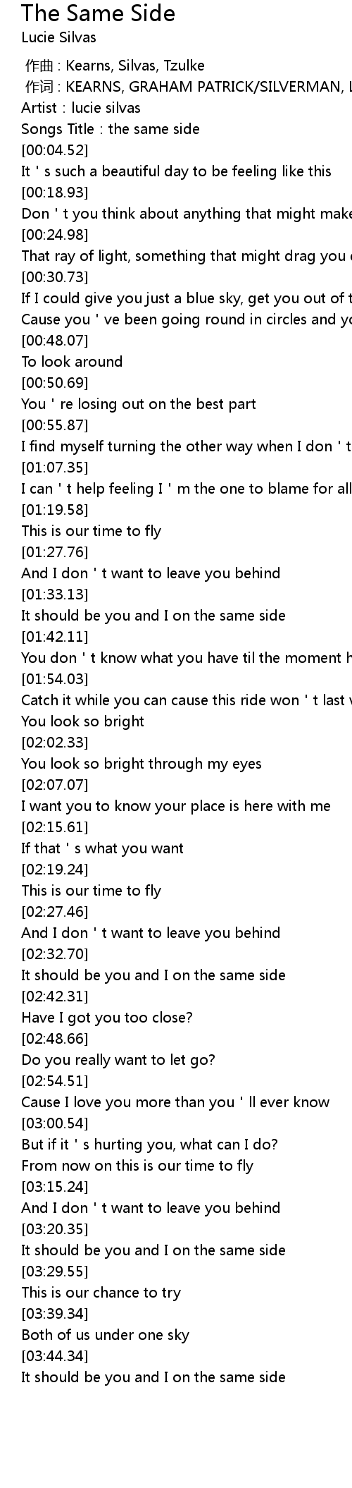 | [00:00.28] | 作词 : KEARNS, GRAHAM PATRICK/SILVERMAN, LUCIE JOANNE/TZUKE, J |