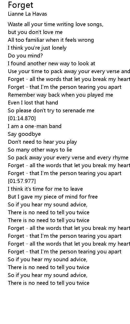 | [01:40.498] | Forget - all the words that let you break my heart |