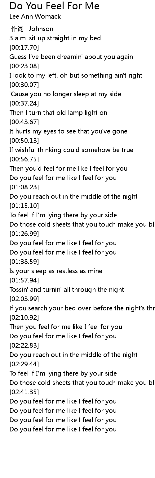 | [00:57.55] | Then you'd feel for me like I feel for you |