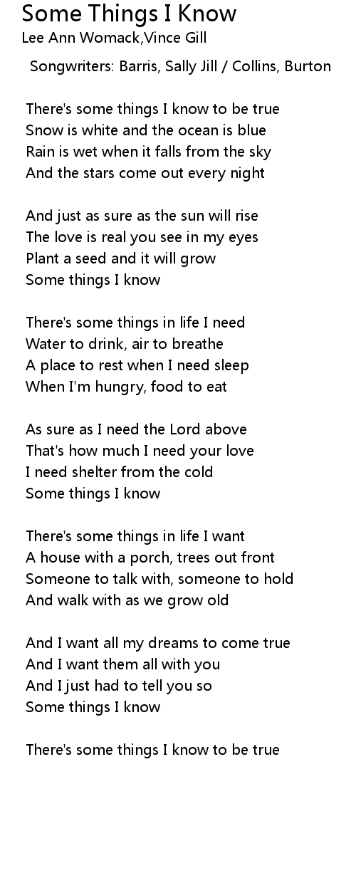 Some Things I Know Lyrics