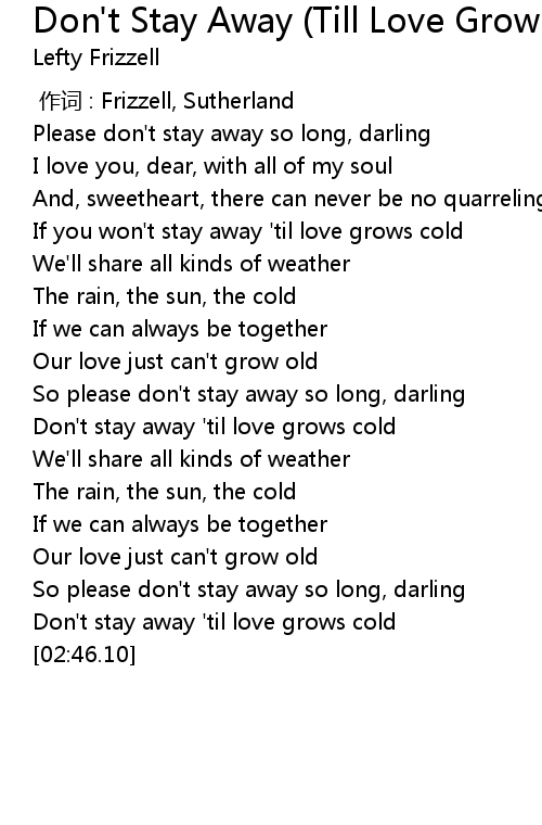 | [02:42.69] | Don't stay away 'til love grows cold |