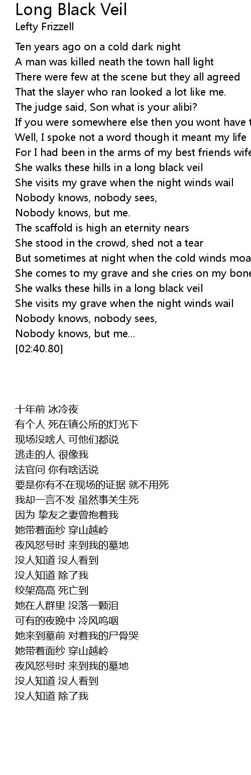 She walks these hills in a long black veil |