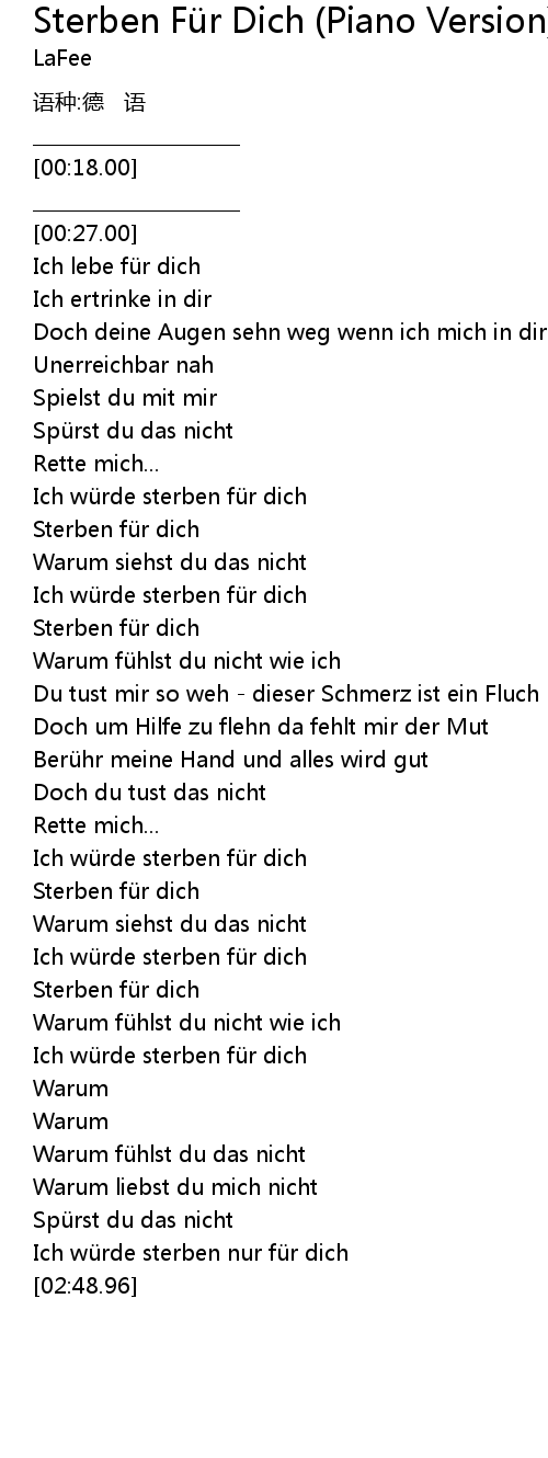 | [02:22.20] | Ich wü rde sterben fü r dich |