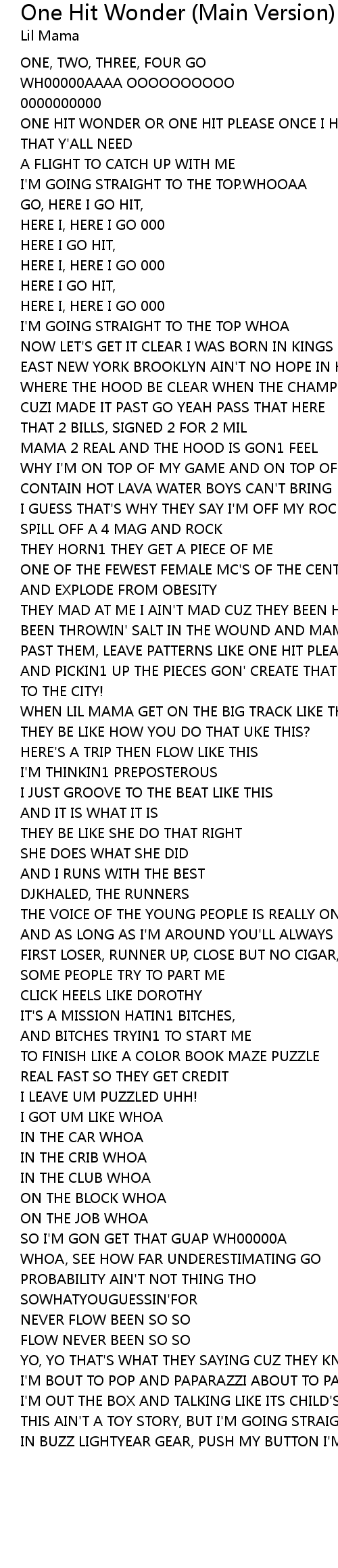 ONE HIT WONDER OR ONE HIT PLEASE ONCE I HIT EM WITH ONE |