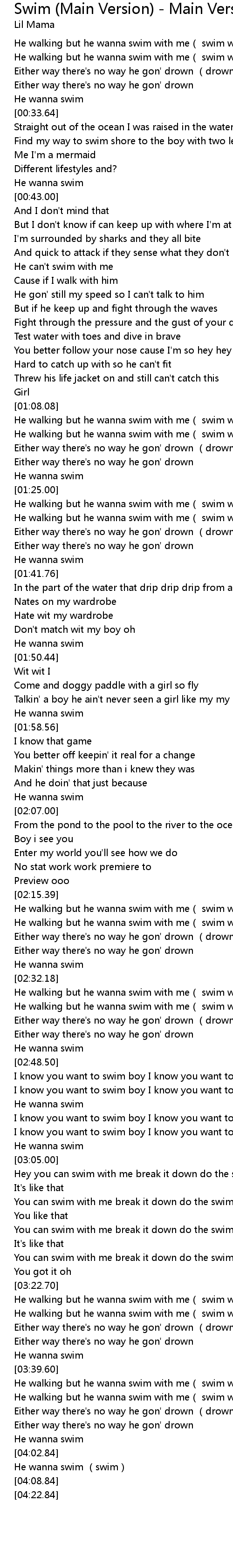 | [03:05.57] | Hey you can swim with me break it down do the swim with me oh |