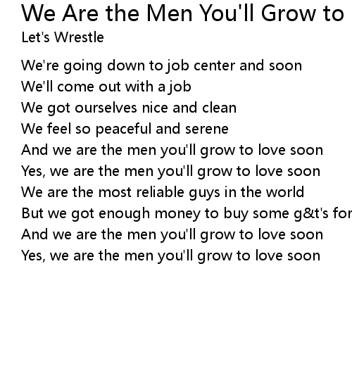 | Song | We Are the Men You'll Grow to Love Soon |