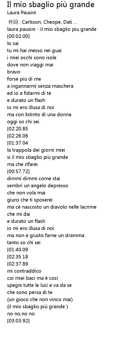 | [02:47.73][02:35.18][01:44.25] | sei il mio sbaglio più grande |