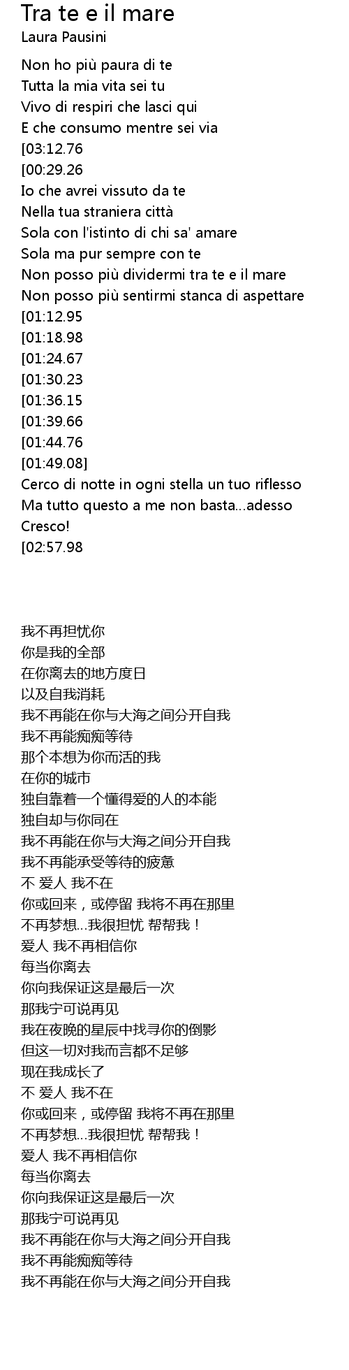 | [03:29.60][03:12.76][00:20.67] | Non posso piu dividermi tra te e il mare |