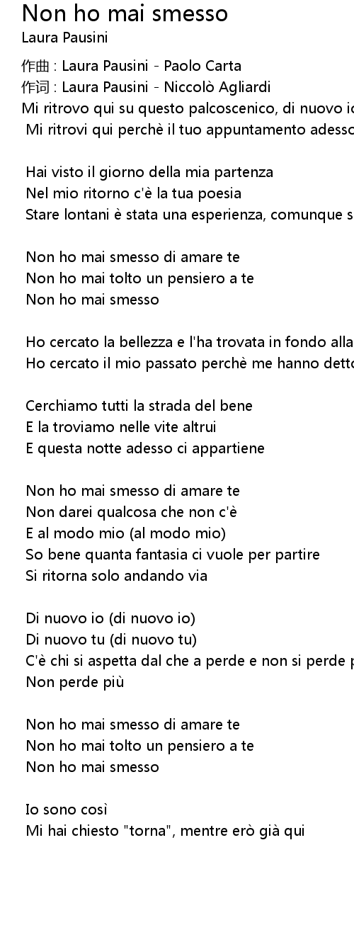 | 作词 : Laura Pausini - Niccolò Agliardi | |