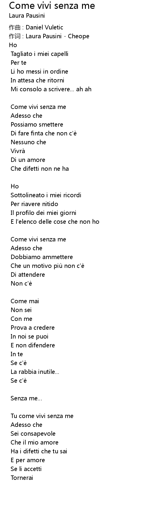 | Song | Come vivi senza me |