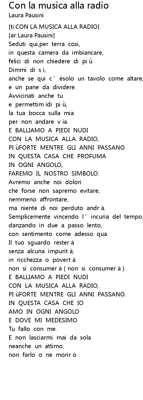 | [00:59.28] | CON LA MUSICA ALLA RADIO, |