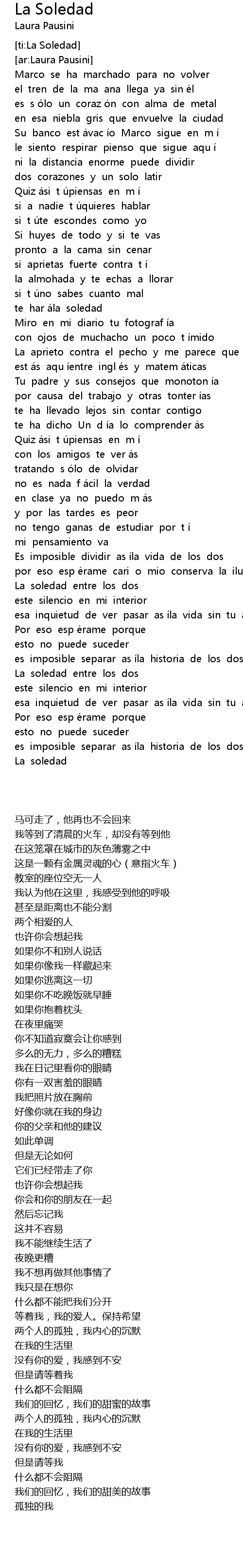 | [00:30.74] | Su banco est ávac ío Marco sigue en m í |