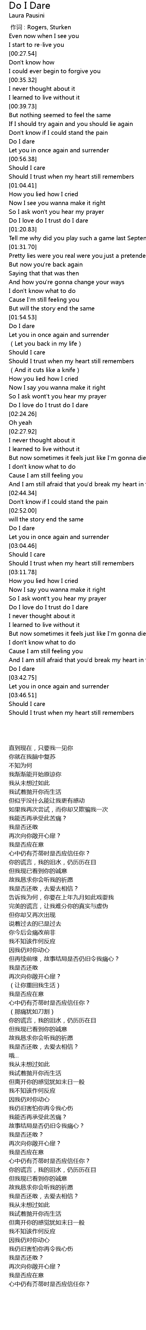| [03:24.77] | Do I love do I trust do I dare |