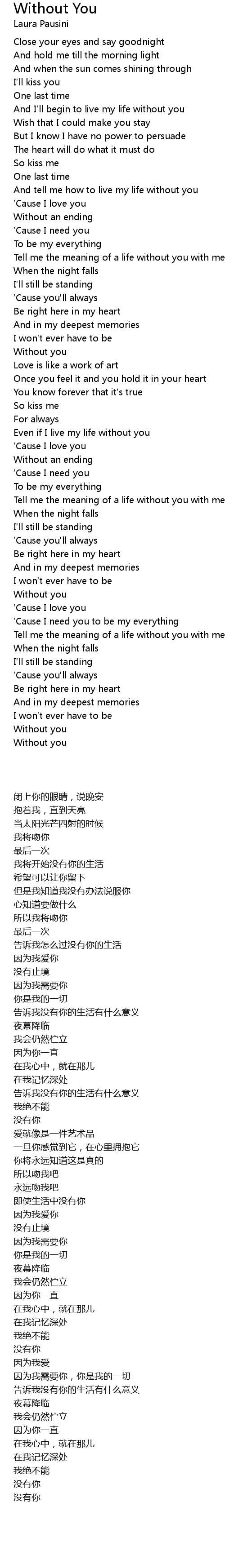 | [01:42.180] | Tell me the meaning of a life without you with me |