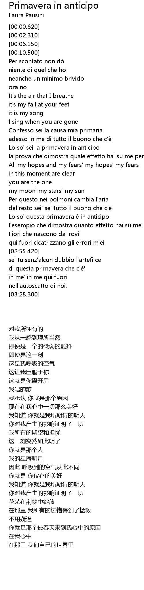 | [02:02.650] | Lo so' questa primavera e in anticipo |