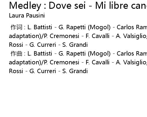 | [00:00.000] | 作曲 : L. Battisti - G. Rapetti (Mogol) - Carlos Ramon (spanish adaptation)/P. Cremonesi - F. Cavalli - A. Valsiglio/A. Fornaciari - G. Paoli/V. Rossi - G. Curreri - S. Grandi |