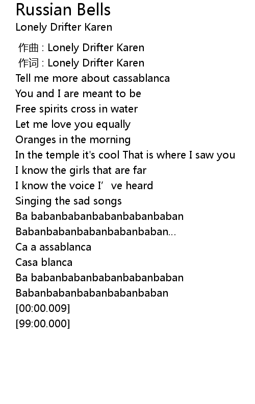 | [00:00.03] | 作词 : Lonely Drifter Karen |