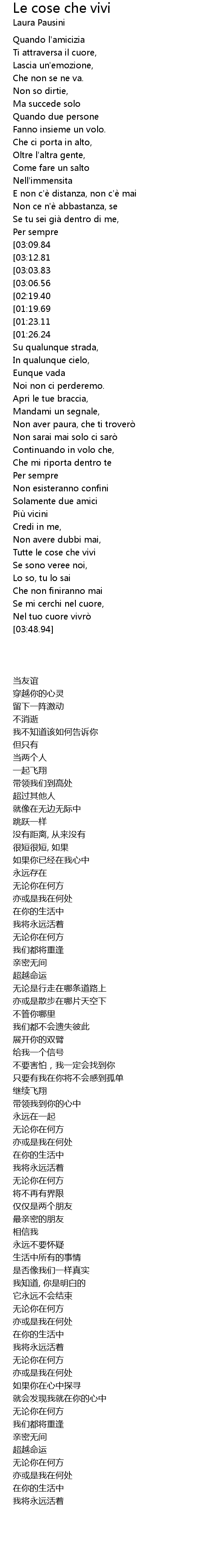 | [03:41.39][03:03.83][02:13.32][01:10.59] | Tra le cose che vivi |