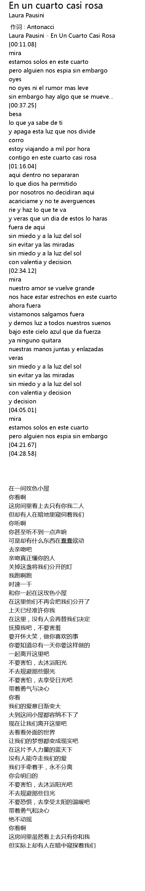 | [00:00.00] | Laura Pausini En Un Cuarto Casi Rosa |