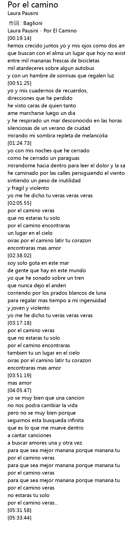 | [00:00.00] | Laura Pausini - Por El Camino |
