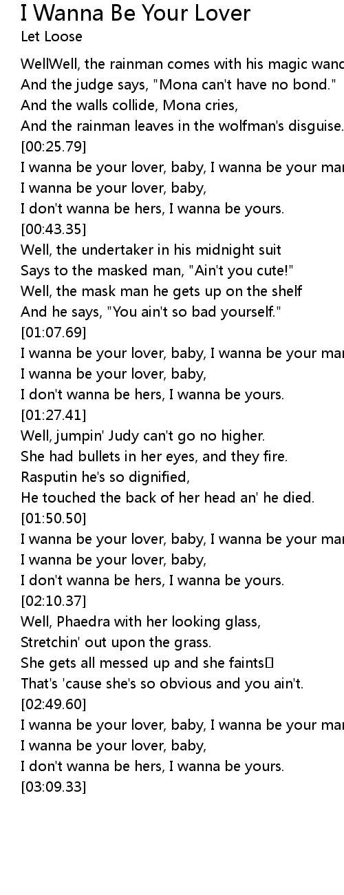 | [00:35.34] | I wanna be your lover, baby, I wanna be your man. |