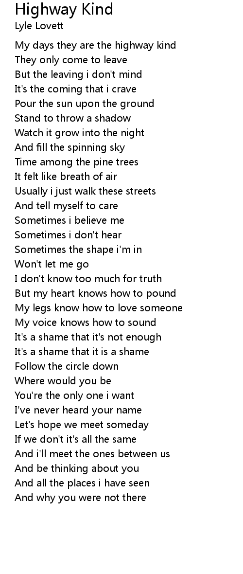 Highway Kind Lyrics