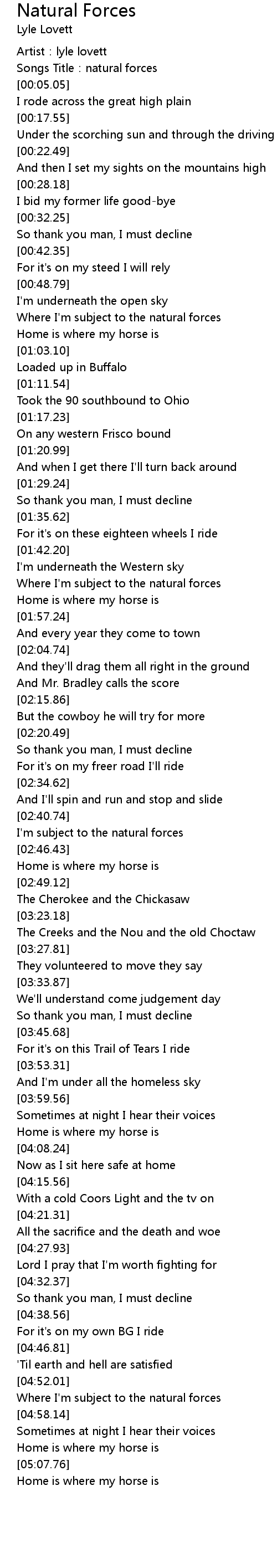 | [00:56.42] | Where I'm subject to the natural forces |
