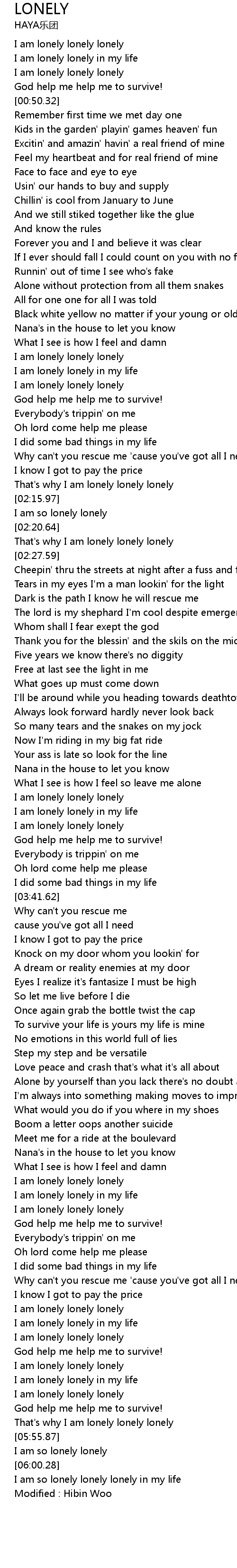| [06:02.38] | I am so lonely lonely lonely in my life |