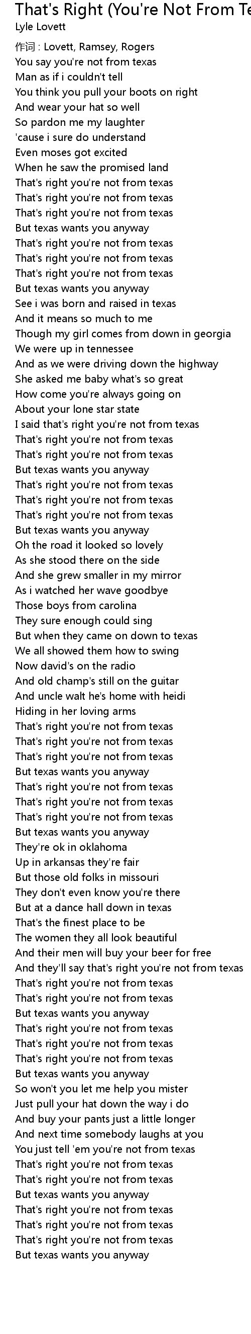 | 作词 : Lovett, Ramsey, Rogers | |