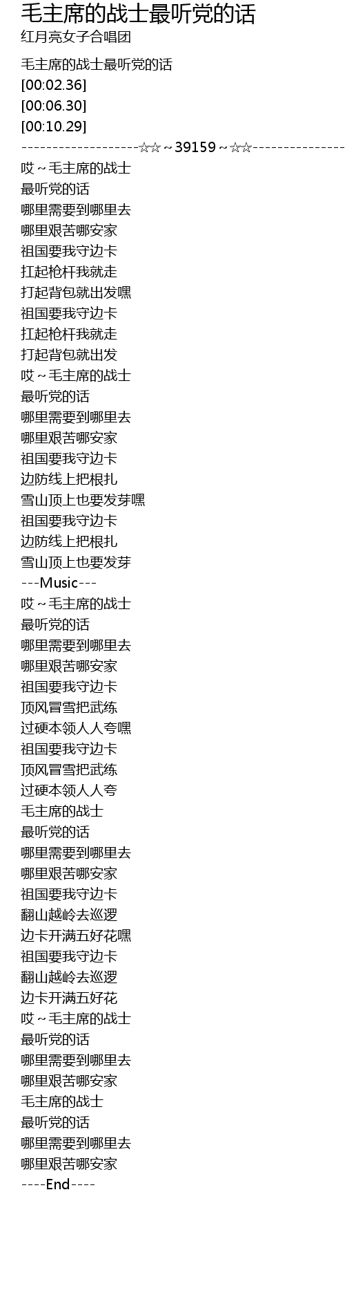 | [00:01.35] | 毛主席的战士最听党的话 |
