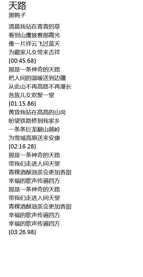 | [00:55.02] | 把人间的温暖送到边疆 |